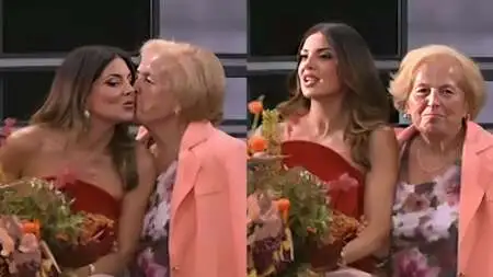 “Τι ντροπή ρε μαμά; Σε βγάλαμε. Ντροπή;”, σχολίασε με χιούμορ η παρουσιάστρια, δίνοντάς της ένα τρυφερό φιλί.
