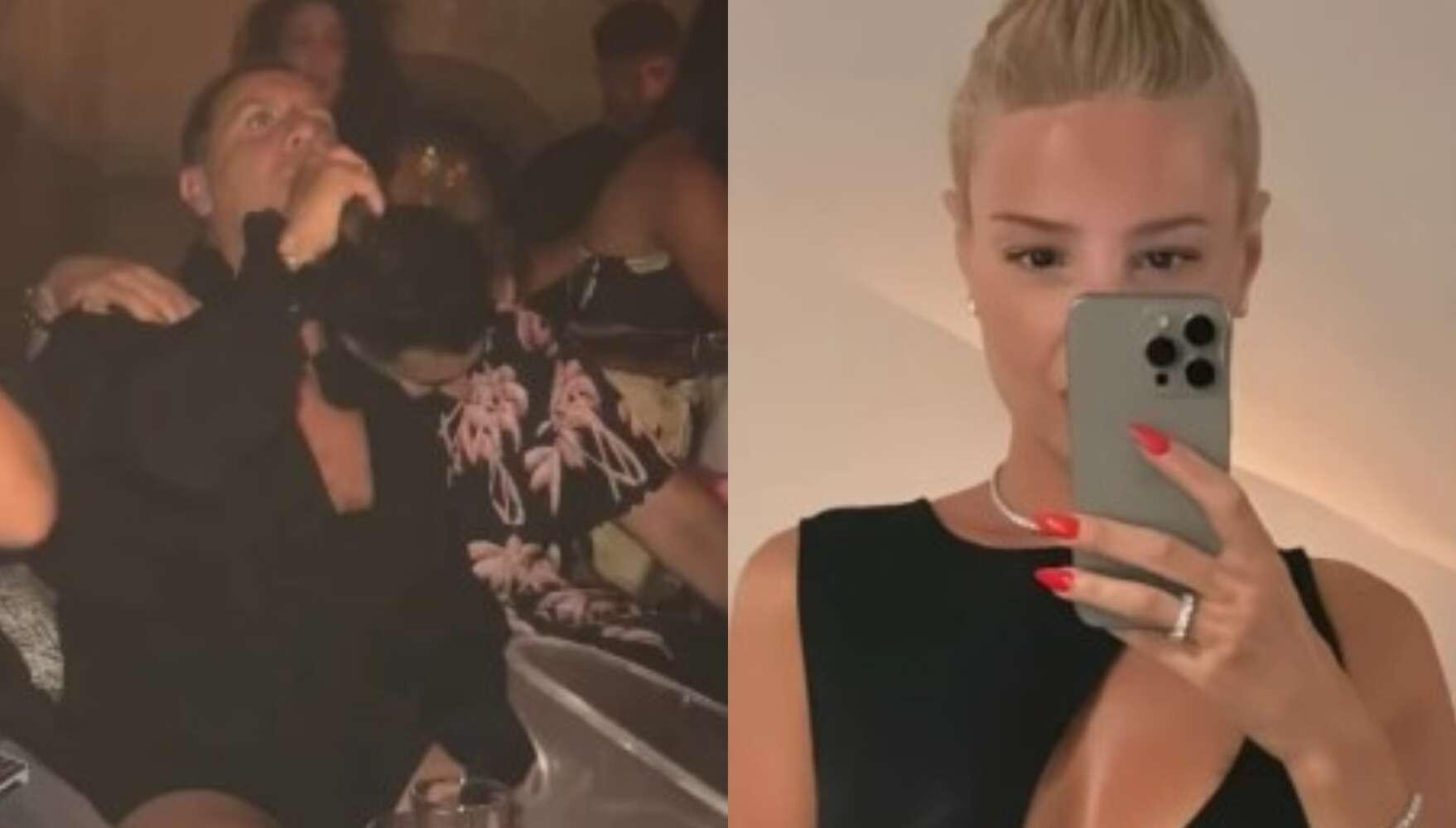 Υπάρχει, επίσης, και στιγμιότυπο που η παρουσιάστρια του ΣΚΑΙ και του Fay’s Time τραγουδάει με τον Γιώργο Μαζωνάκη όταν εκείνος παίρνει το μικρόφωνο από τον πρωταγωνιστή της βραδιάς. Στην παρέα της ήταν και ένας άλλος άντρας και ένα φιλικό ζευγάρι.