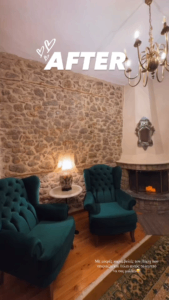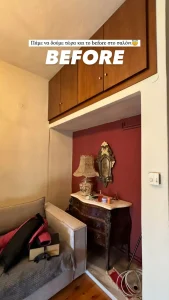 «Ένας before & After στα πράγματα που έχουμε φτιάξει στο σπίτι εδώ πέρα, δεν έχουμε τελειώσει ακόμη θα κάνουμε κι άλλα πράγματα. Είμαι του μίνιμαλ, μου αρέσει πολύ το λευκό, το καινούργιο, το σύγχρονο, αλλά το σπίτι στην Αράχωβα έχει μια ιστορία, έχει vibe παραδοσιακό.