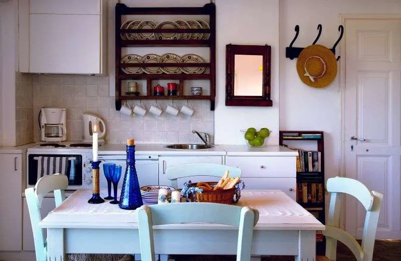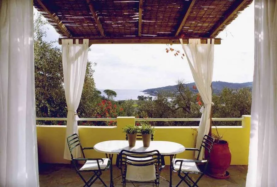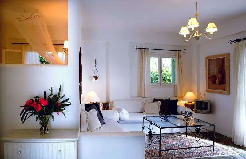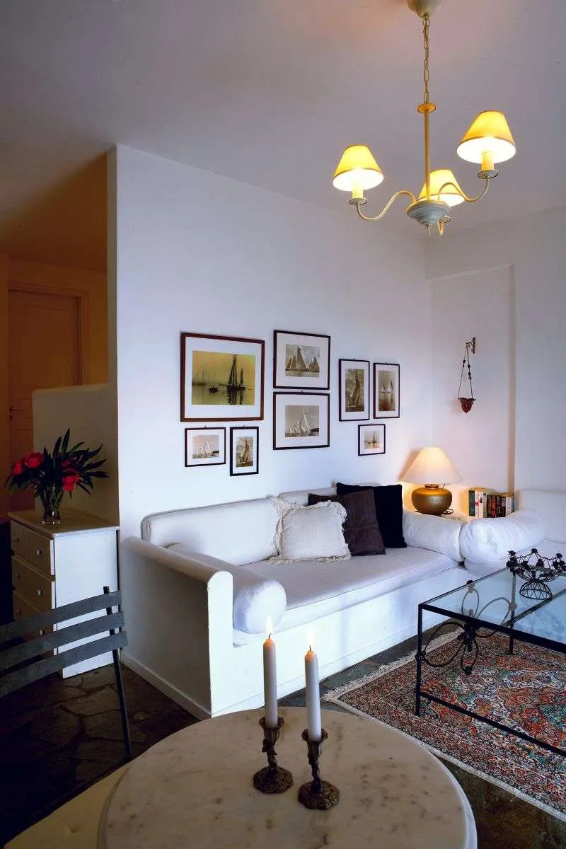 Οι «Bay View Villas», που πήραν το όνομά τους από τη φαντασμαγορική θέα που έχουν στο λιμάνι, διατηρούν την αισθητική μιας άλλης εποχής, απόλυτα συνυφασμένη με τη ματιά του Παπακαλιάτη και της μητέρας του Βίλλυς Μαλάμη.