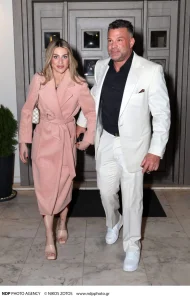 Το ζευγάρι περπατούσε χέρι χέρι με τη σύζυγό του ηθοποιού να κλέβει για πολλοστή φορά την παράσταση μέσα από το κομψό look της. Πιο συγκεκριμένα, η Βαλεντίνη Παπαδάκη φόρεσε ένα ροζ, μακρύ παλτό, το οποίο είχε δέσει με τη ζώνη του, τονίζοντας έτσι τη μέση της όσο περπατούσε.