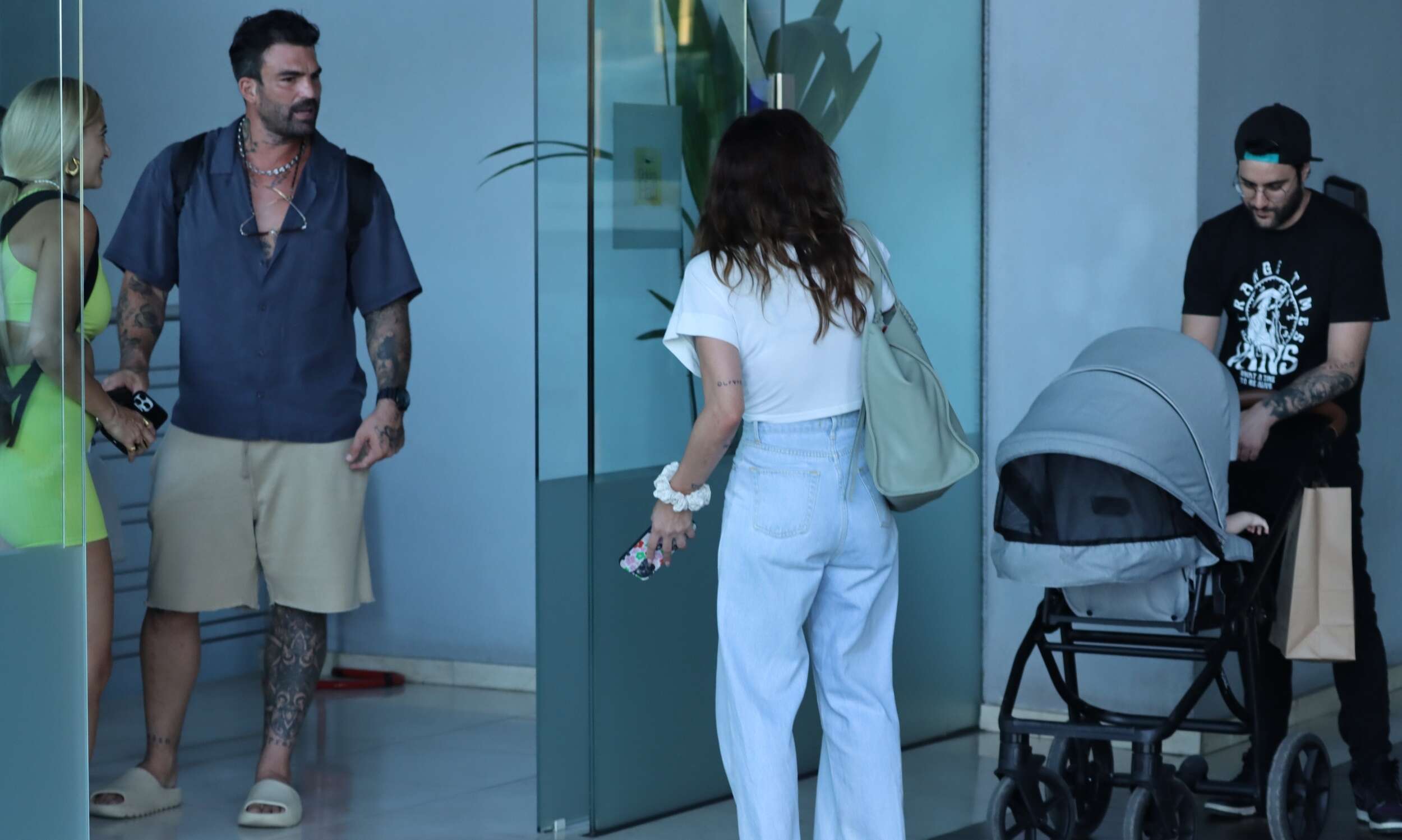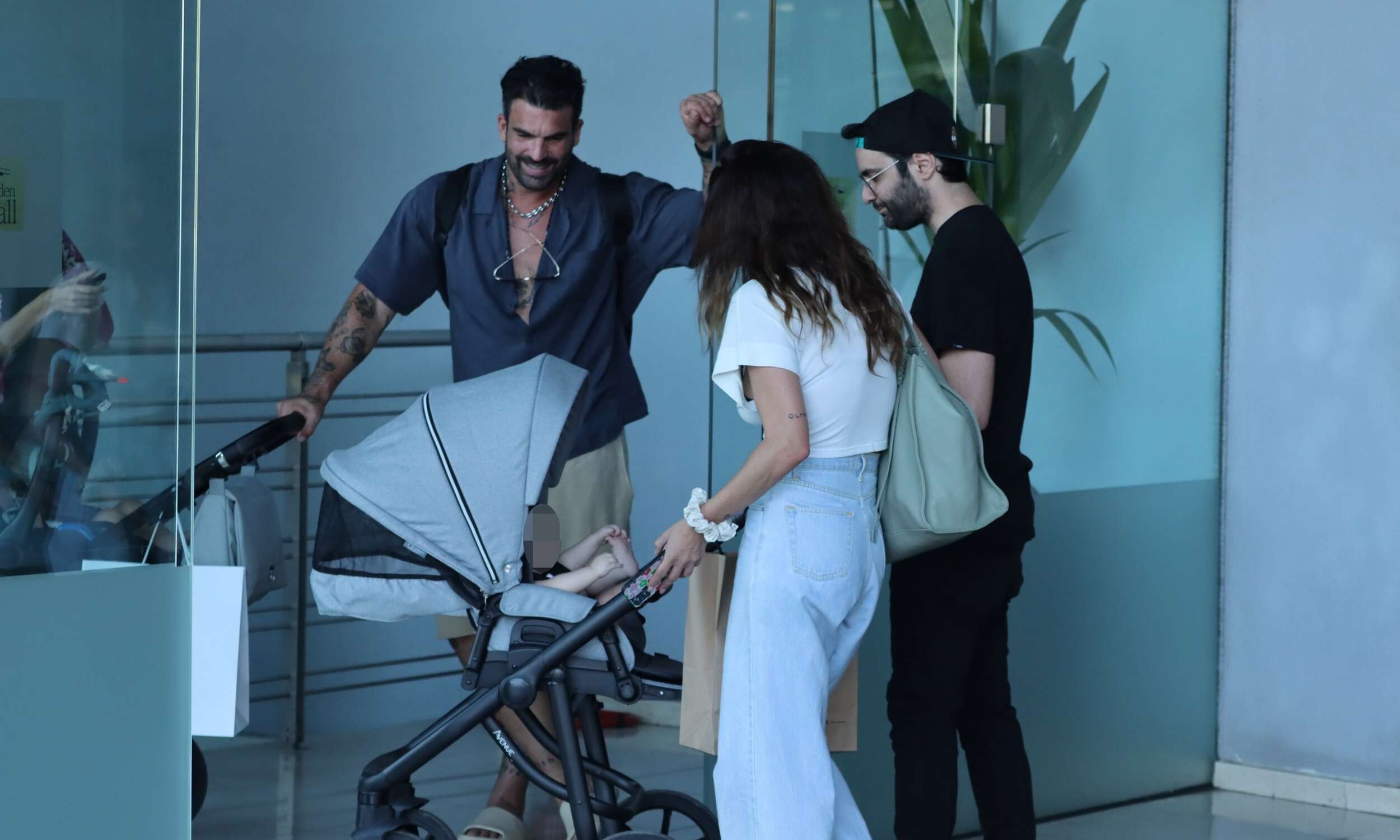 Τα δύο ζευγάρια στάθηκαν για αρκετή ώρα να μιλούν στην είσοδο του εμπορικού κέντρου δείχνοντας πολύ χαρούμενα που είχαν αυτή την τυχαία συνάντηση.