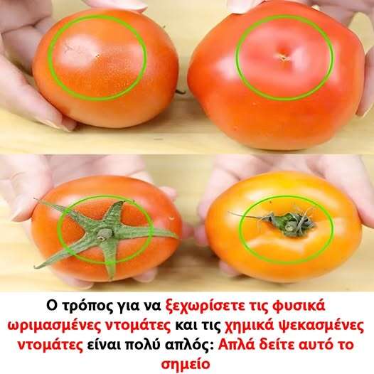 Ο ευκολότερος τρόπος για να αναγνωρίσετε τις φυσικά ώριμες ντομάτες είναι κοιτάζοντας την περιοχή του μίσχου και πως είναι το χρώμα:
