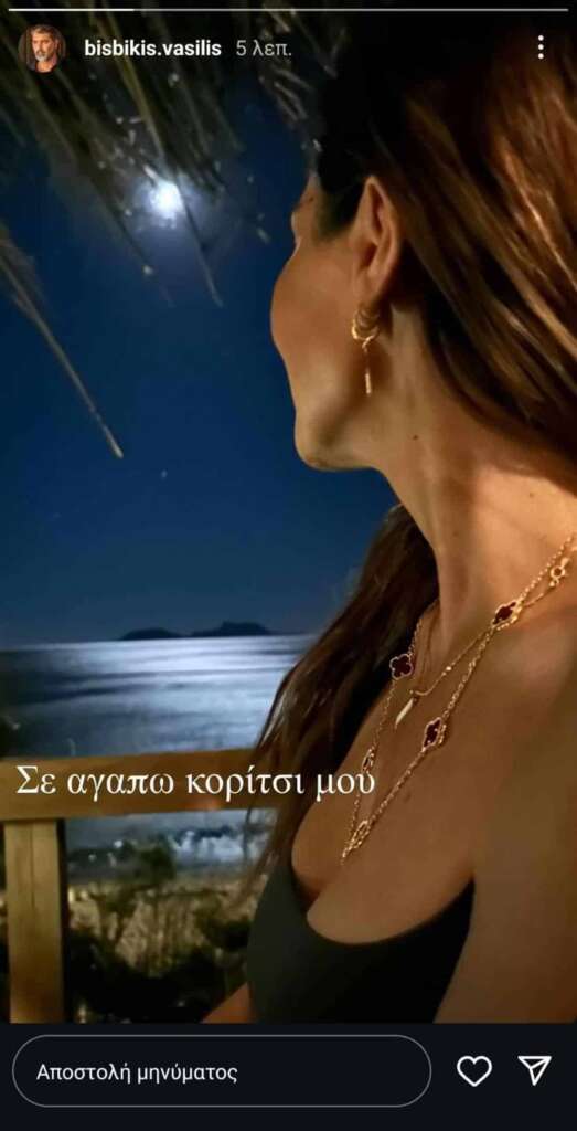 Λίγη ώρα μετά, ο Βασίλης Μπισμπίκης απαθανάτισε την τραγουδίστρια και δημοσίευσε τη φωτογραφία της στα instastories του, κάνοντας παράλληλα μια μικρή ερωτική εξομολόγηση.