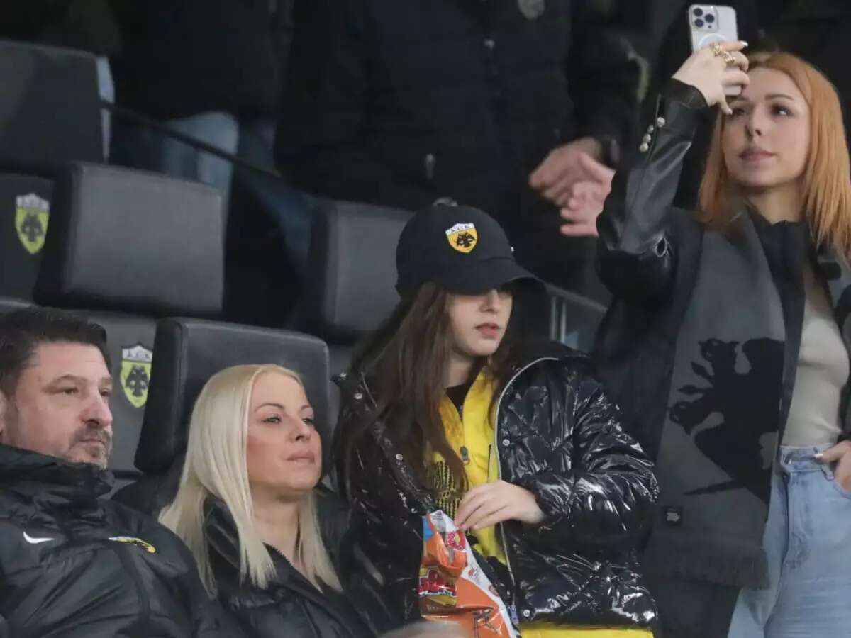 Ο υφυπουργός Εθνικής Άμυνας, Νίκος Χαρδαλιάς, έκανε μια σπάνια εμφάνιση με τη σύζυγό του, Γιώτα Παναγιωτοπούλου και τις κόρες τους, την 22χρονη Ιωάννα και την 11χρονη Δήμητρα για να παρακολουθήσει την αγαπημένη του ομάδα.