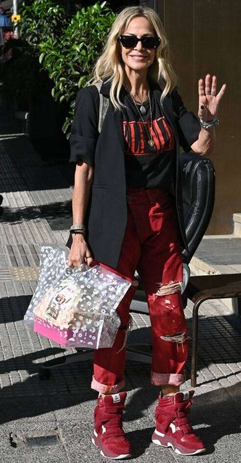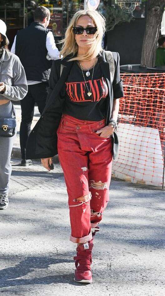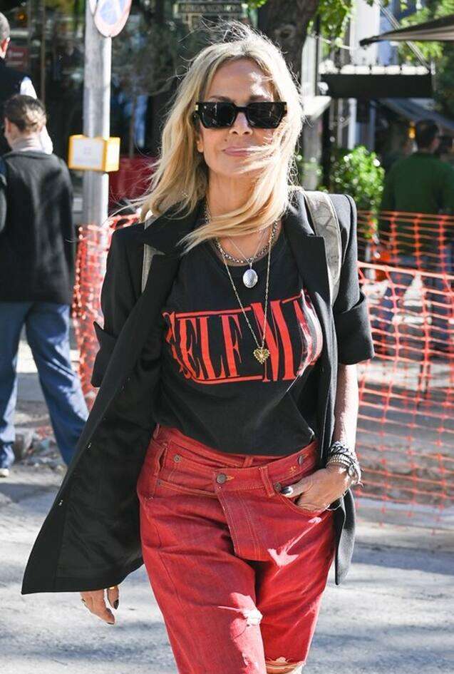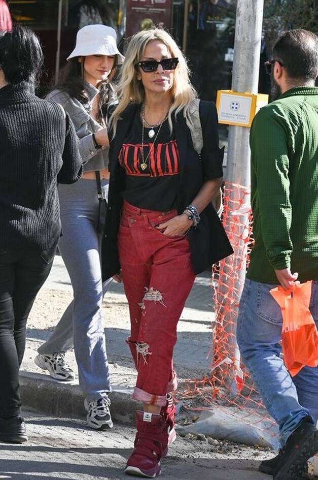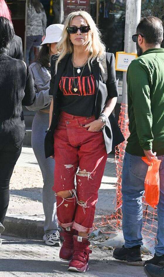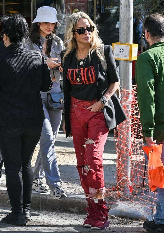 Η Άννα Βίσση, για άλλη μια φορά, έκλεψε τις εντυπώσεις, λόγω του στιλ της, καθώς επέλεξε, για τη βόλτα της αυτή, να ντυθεί σε μαύρους και κόκκινους τόνους, φορώντας ένα τζιν που ούτε θα ταίριαζε σε πολλές αλλά ούτε όλες οι γυναίκες μπορούν να το υποστηρίξουν.