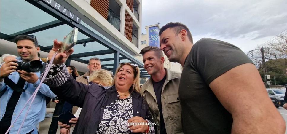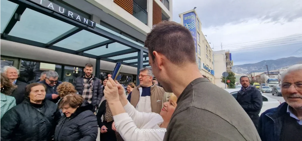 Οπως γράφει το gegonotanews.gr ψηφοφόροι από κάθε γωνιά της Μαγνησίας συγκεντρώθηκαν για να γνωρίσουν το νέο πρόεδρο με γυναίκες ψηφοφόρους, να “μαλώνουν” για το ποια θα τον πρωτοπάρει αγκαλιά . Δίπλα από τις “ανταγωνίστριες” μια τρίτη, τον σταύρωνε για να μην τον ματιάσουν… Ο κ. Κασσελάκης συνοδευόταν από τον σύζυγό του.