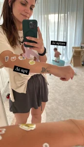Επάνω στη φωτογραφία έγραψε με χιούμορ μάλιστα πως το χέρι της είναι έργο τέχνης, ενώ η κόρη της είναι ο καλλιτέχνης. Η συγκεκριμένη φωτογραφία μάλιστα μας γύρισε στα δικά μας παιδικά χρόνια, τότε που κάναμε συλλογή και ανταλλαγή αυτοκόλλητων με τις δικές μας φίλες.