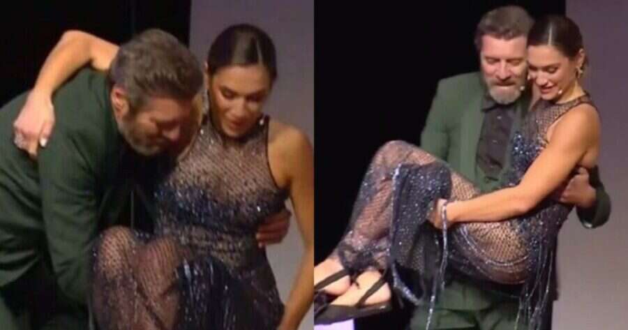 Ειδικότερα, εμφανίστηκε πρώτα ο ίδιος στην σκηνή και έπειτα πήρε αγκαλιά την Γεωργία Καλτσή και την τοποθέτησε στο αμαξίδιό της.