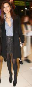 Συγκεκριμένα όπως βλέπετε από τις φωτογραφίες, η Κατερίνα Λέχου φόρεσε ένα πρωινό γαλάζιο πουκάμισο μια μίνι φούστα κεντημένη με παγιέτες, η οποία αναβάθμισε το look της και το έκανε βραδινό με μαύρο παλτό. Ολοκλήρωσε το λουκ της με μαύρο καλσόν και ένα ζευγάρι μοντέρνες γόβες με τετράγωνη μύτη.