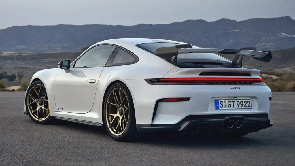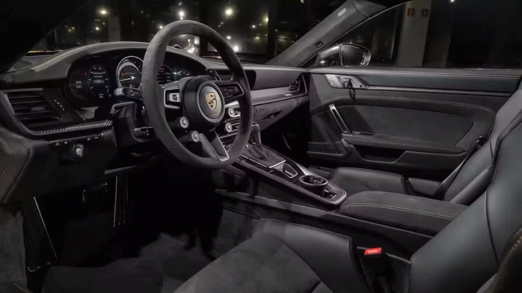 Το εσωτερικό είναι λιτό αλλά λειτουργικό, με αγωνιστικά καθίσματα από ανθρακονήματα, roll cage και ψηφιακό πίνακα οργάνων που εστιάζει στην απόδοση. Η GT3 RS είναι σχεδιασμένη για την πίστα, αλλά παραμένει απολαυστική και στον δρόμο.