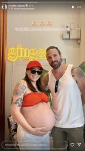 Σε μία από τις φωτογραφίες, ποζάρει με εμφανώς φουσκωμένη κοιλιά, αγκαλιά με τον σύζυγό της, ενώ σε άλλη ανάρτηση δημοσίευσε μια τρυφερή selfie με τον Γρηγόρη Μόργκαν, αποτυπώνοντας την οικογενειακή ευτυχία που πλησιάζει.