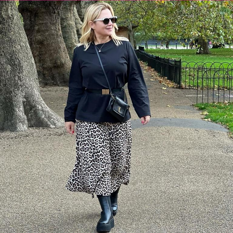 Χωρίς ίχνος μακιγιάζ, φορώντας γυαλιά κι έχοντας την οικογένειά της στο πλευρό της, η παρουσιάστρια φαίνεται πιο χαρούμενη από ποτέ.