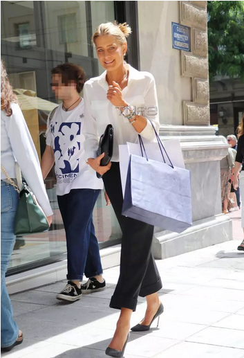 Η Τατιάνα Μπλάτνικ, λίγο πριν τις καλοκαιρινές της διακοπές, βρέθηκε στο κέντρο της Αθήνας για να απολαύσει τη βόλτα της, αλλά και να κάνει τις αγορές της στα καταστήματα. Ο φωτογραφικός φακός ήταν παρών και την απαθανάτισε. Η Τατιάνα Μπλάτνικ έδειχνε ιδιαίτερα ευδιάθετη και απολάμβανε τη στιγμή, ενώ επέλεξε ένα casual chic και κλασικό σύνολο, ιδανικό, τόσο για το γραφείο, όσο και για μια βόλτα στο κέντρο. Η Τατιάνα διάλεξε ένα λευκό πουκάμισο σε μεσάτη γραμμή και άφησε τις μανσέτες ξεκούμπωτες, ενώ από κάτω επέλεξε ένα μαύρο κλασικό παντελόνι γραφείου. Το σύνολο το ολοκλήρωσε με μαύρες, pointy γόβες και μαύρη mini bag, κάνοντας τη συνολική εμφάνιση και πιο πρωινή και casual. Η Τατιάνα ζει με τον σύζυγό της, Νικόλαο, στην Ελλάδα και δεν σταματά να εκφράζεται με όμορφα λόγια για τη χώρα μας, ενώ είναι η επιτομή του Minimal chic look και σε κάθε της εμφάνιση τα σχόλια είναι πάντα κολακευτικά.
