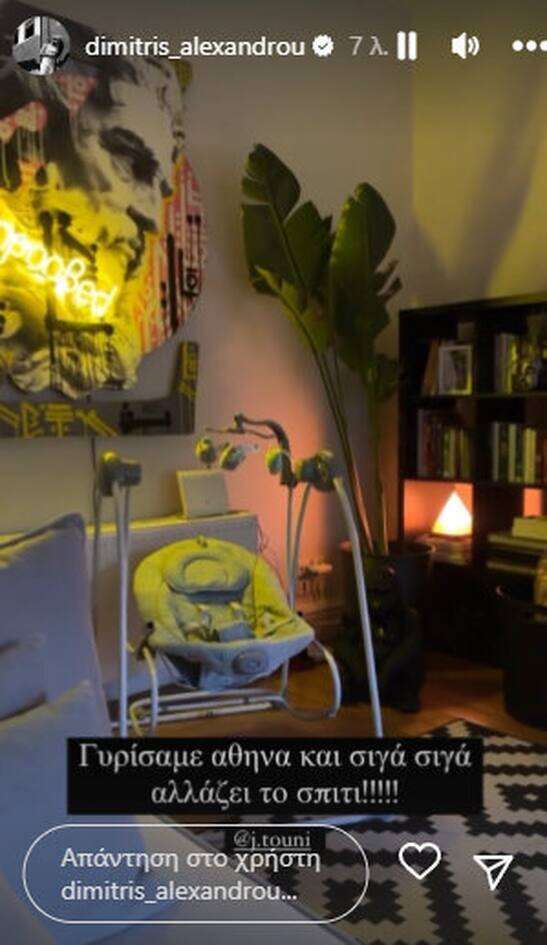 Ο παρουσιαστής μαζί με την σύντροφο του αλλάξανε μερικά πράγματα μέσα στο σαλόνι ώστε να μπει το relax του μωρού και μερικά ακόμη αντικείμενα, χρηστικά για τη διευκόλυνσή τους.