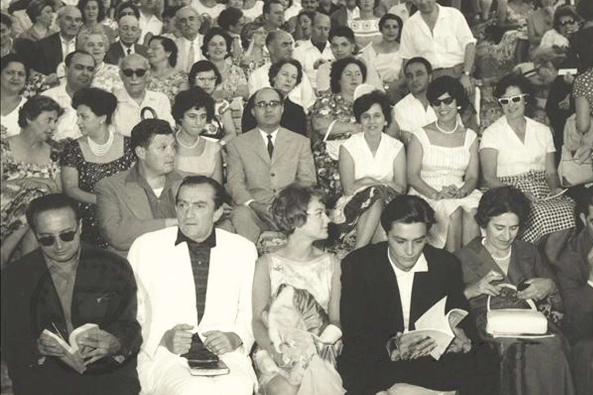 Luchino Visconti, Romy Schneider and Alain Delon. Theatre of Epidaurus, Greece 1960