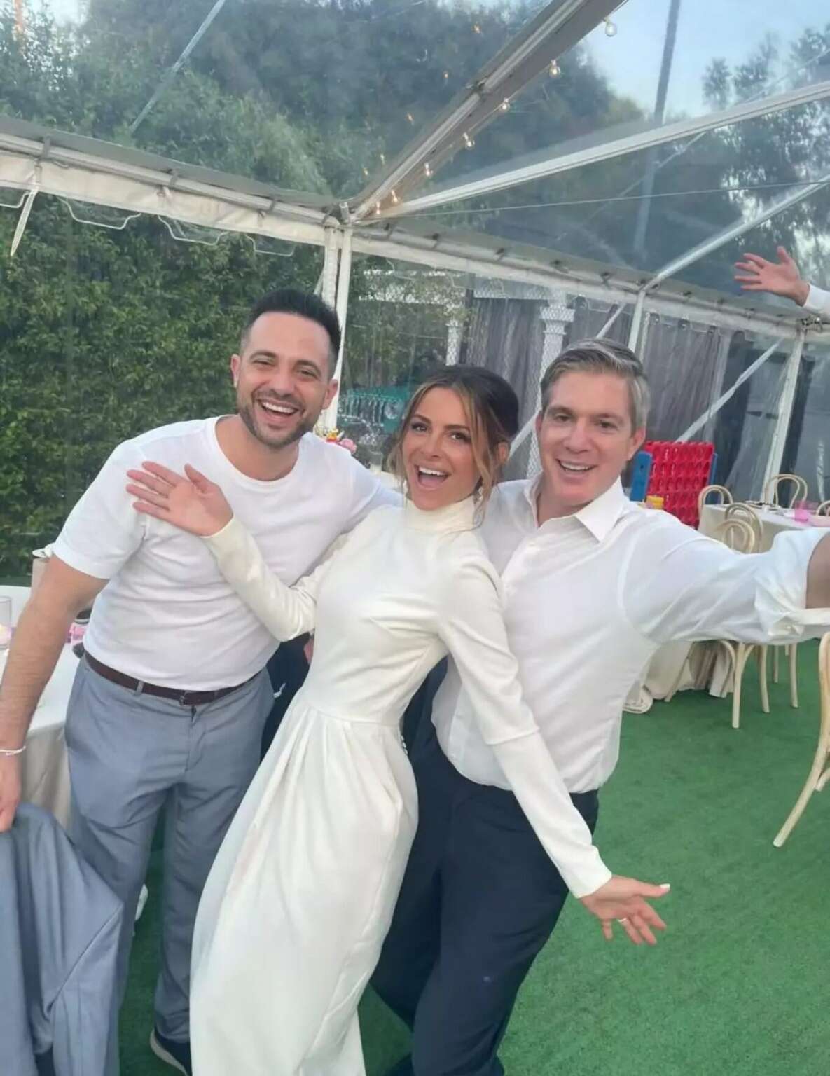 Η τελετή διεξήχθη σε έναν εξωτερικό χώρο με ειδυλλιακό περιβάλλον. Η διακόσμηση του χώρου ήταν εντυπωσιακή, ενώ στην εκδήλωση παρευρέθηκαν συγγενείς και αγαπημένα μέλη της οικογένειας.