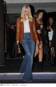Φορώντας ένα τζιν καμπάνα, ένα λευκό πουκάμισο και ένα δερμάτινο σακάκι, ήταν πολύ κομψή. Το look της ήταν πρωινό επειδή νωρίτερα είχε βρεθεί σε εκδήλωση του Make a Wish, όπου είναι πρέσβειρα.