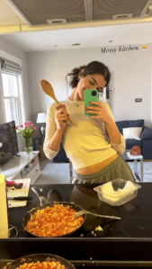 Μάλιστα, ανάρτησε μία φωτογραφία από το αποτέλεσμα της μαγειρικής της και τη συνόδευσε με τη λεζάντα “Ακατάστατη κουζίνα”.