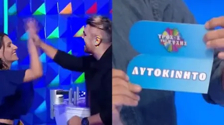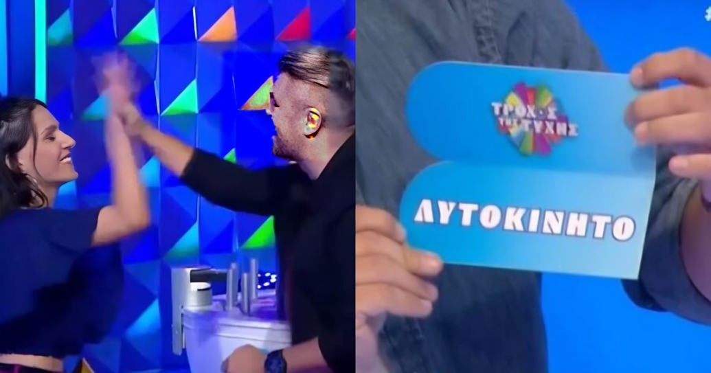 Ο Πέτρος Πολυχρονίδης άνοιξε τον φάκελο και όταν αποκαλύφθηκε η λέξη «αυτοκίνητο» πανηγύρισε μαζί με τη Νατάσα Κουβελά τη μεγάλη νίκη της τυχερής παίκτριας!