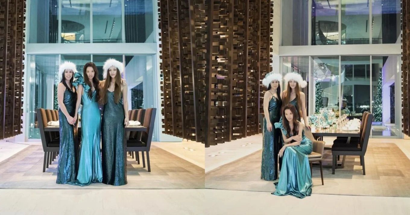 Η 74χρονη Γουάνγκ έγραψε στη λεζάντα των φωτογραφιών «Εγώ και τα κορίτσια μου» και φωτογραφήθηκε μαζί με τις κόρες της, Σεσίλια και Ζοσεφίν. Στις φωτογραφίες ποζάρουν με φορέματα ίδιου χρώματος.”