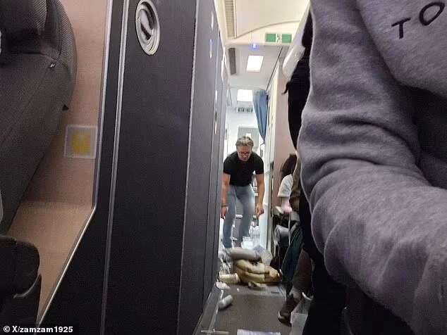 Επιβάτες της πτήσης ανήρτησαν φωτογραφίες που δείχνουν τα αποτελέσματα από τις αναταράξεις με διάφορα αντικείμενα να έχουν σκορπιστεί στο πάτωμα του αεροπλάνου.