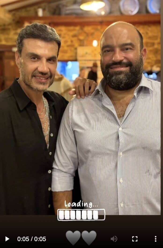 ανήρτησε και μια φωτογραφία στην οποία τον βλέπουμε να ποζάρει με τον σύντροφό του του, Νάσο και την εκρηκτική τραγουδίστρια και επάνω έγραψε: «Διπλοκουμπαριά».