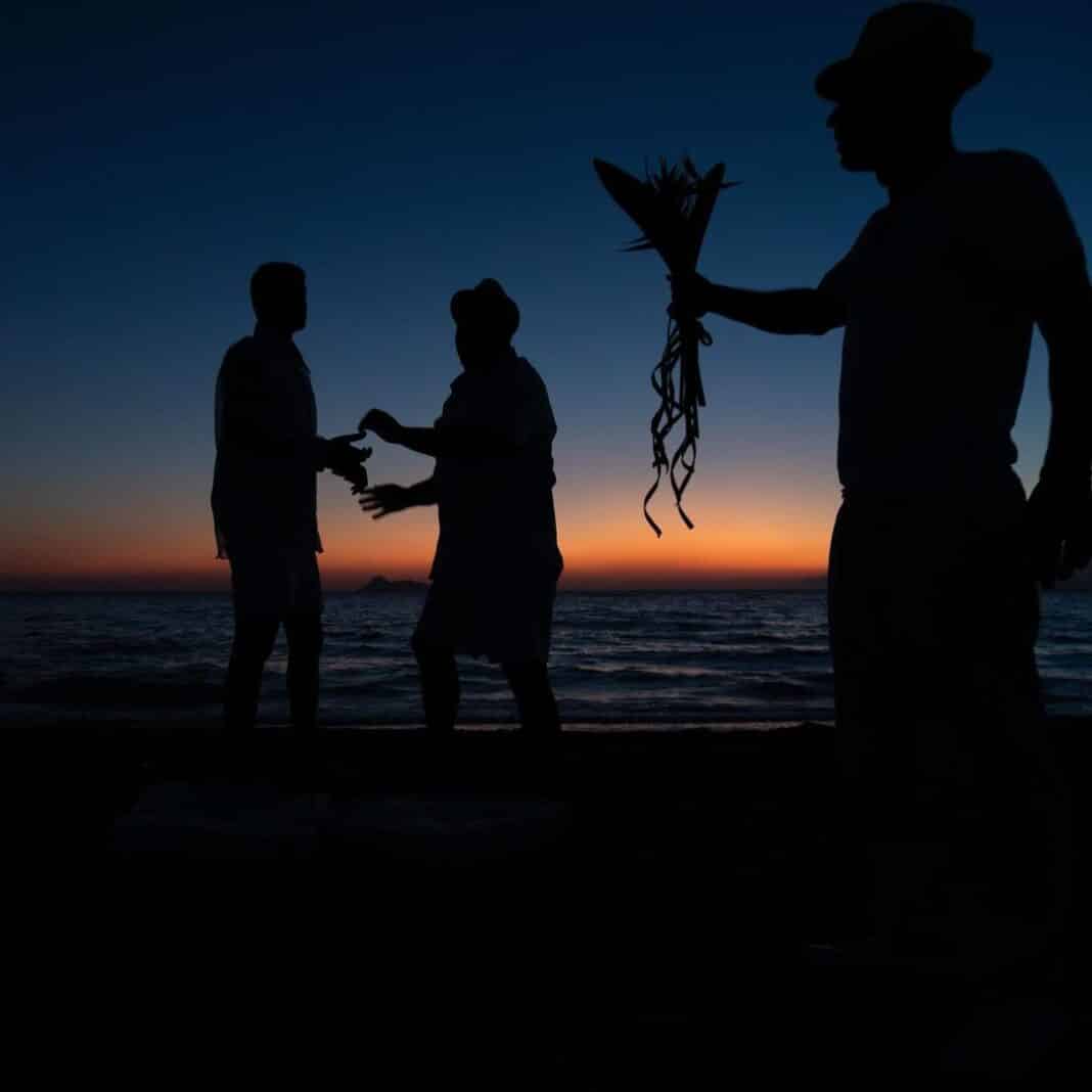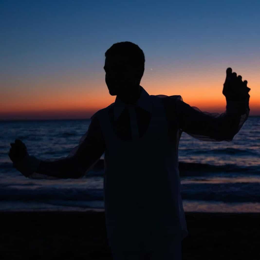 Με φόντο το υπέροχο ηλιοβασίλεμα, ο Παντελής Τουτουντζής έφτασε στην παραλία ντυμένος με λευκό see-through πουκάμισο, σορτς και rope σανδάλια στο ίδιο χρώμα, ενώ στα λευκά ήταν ντυμένοι και όλοι οι καλεσμένοι που τον περίμεναν σε ένα εντυπωσιακά διακοσμημένο boho σκηνικό.