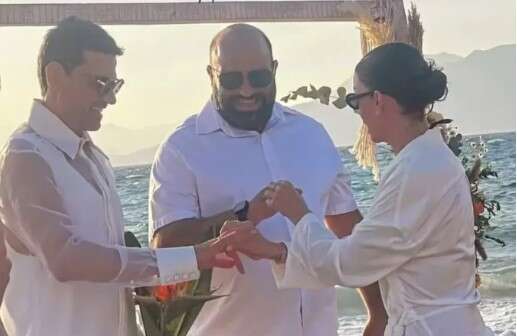 Ο γνωστός make-up artist συνοδεύτηκε από την κόρη του, ενώ ο σύντροφός του, Νάσος, τον περίμενε στην παραλία μαζί με τον γιο τους. Στα λευκά ήταν ντυμένη και η κουμπάρα του ζευγαριού, Ελένη Φουρέιρα, που πέρασε τις βέρες στο ζευγάρι μπροστά στη θάλασσα. Παρούσα στον γάμο και η Ιωάννα Σρόιτερ, που ανέβασε στιγμιότυπα σε stories στον λογαριασμό της στο Instagram.