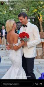 Μάλιστα και η στενή φίλη της Τζένης Μελιτά και σεφ Γωγώ Δελογιάννη βρέθηκε στον γάμο και απαθανάτισε το ευτυχισμένο ζευγάρι.