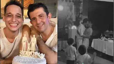Την ευχάριστη είδηση έκανε γνωστή ο ηθοποιός, μέσω ανάρτησης του στον προσωπικό του λογαριασμό στο Instagram, αναρτώντας μια φωτογραφία με τον σύζυγό του, μπροστά στη γαμήλια τούρτα.