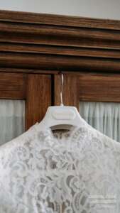 Στις φωτογραφίες που μοιράστηκε ο αδερφός του ηθοποιού, Νίκος Πανταζάρας, ο οποίος είναι φωτογράφος, o γαμπρός φόρεσε ένα μαύρο σμόκιν και λευκό πουκάμισο και η νύφη ένα νυφικό με δαντέλα από τον λαιμό ως τη μέση.