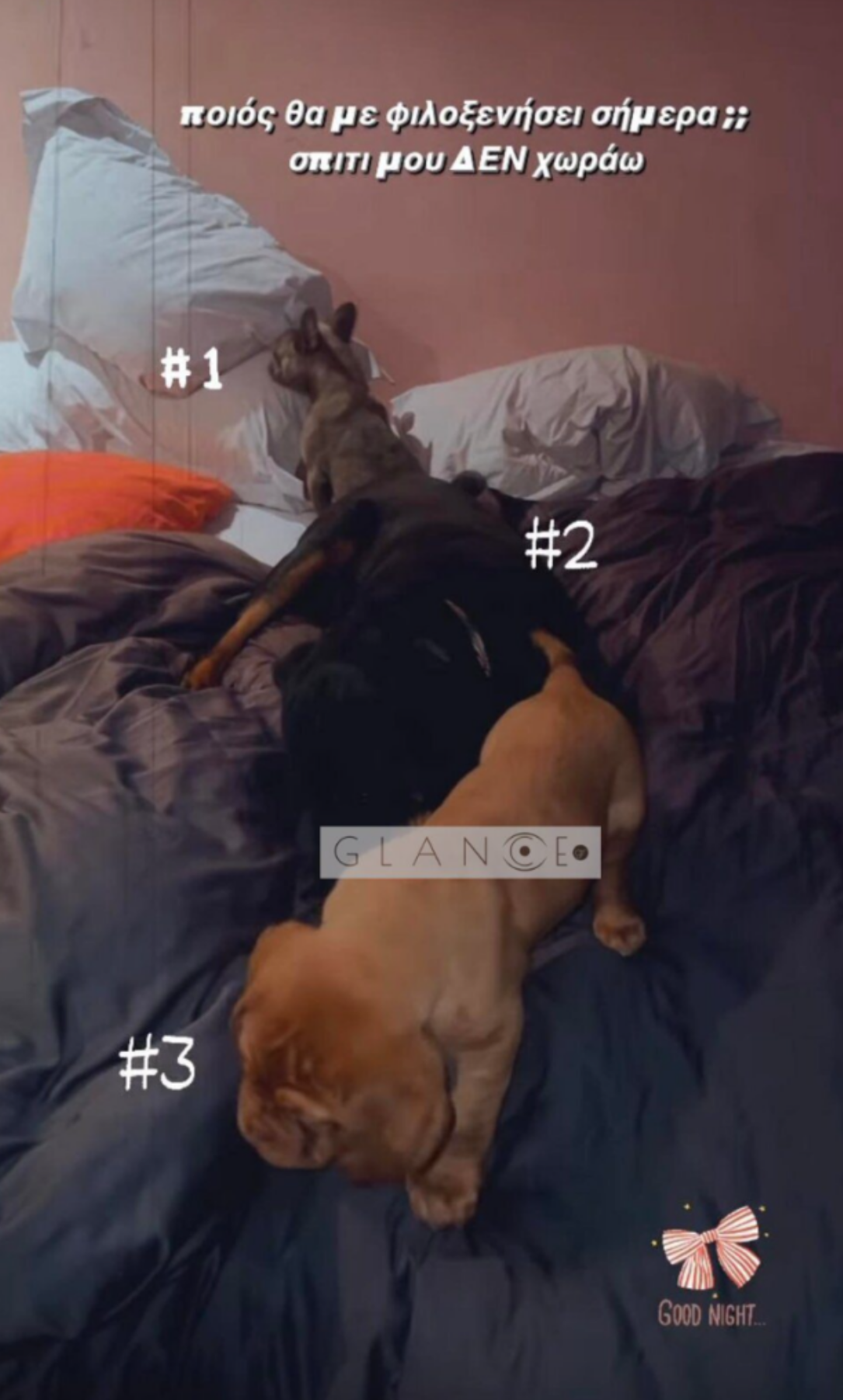 Εντυπωσιάζει το τεράστιο κρεβάτι που έχει η Δανάη Μπάρκα στο δωμάτιό της για να κοιμάται μαζί με τους τετράποδους φίλους της.