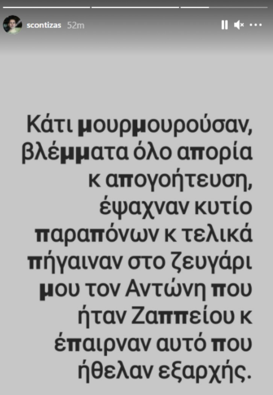 «Κάτι μουρμουρούσαν βλέμματα όλο απορία κ απογοήτευση έψαχναν κυτίο παραπόνων κ τελικά πήγαιναν στο ζευγάρι μου τον Αντώνη που ήταν Ζαππείου κ έπαιρναν αυτό που ήθελαν εξαρχής», συνέχισε σε επόμενη ιστορία ο γνωστός σεφ.