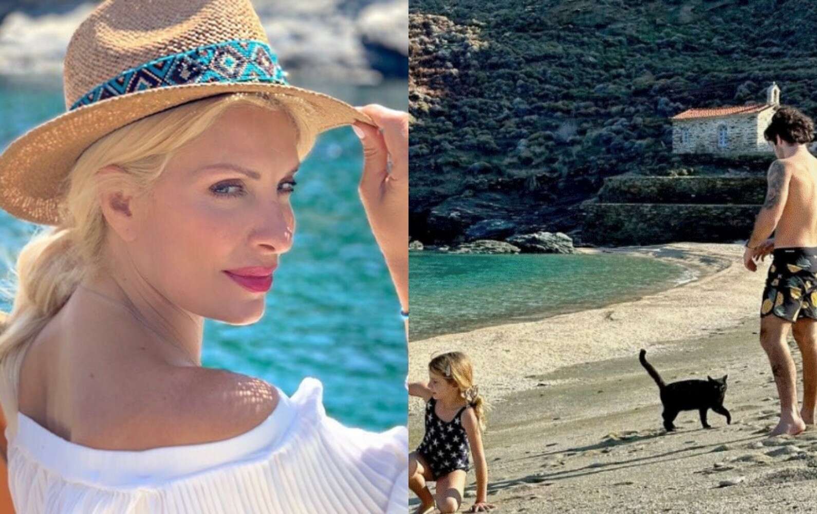 Η παρουσιάστρια πολύ συχνά το καλοκαίρι και τα τριήμερα ταξιδεύει στο νησί μαζί με την οικογένεια της, αφού της αρέσει η άγρια ομορφιά του αλλά και η παραλία που βρίσκεται κάτω από το σπίτι τους (δείτε φωτογραφίες από το εσωτερικό του) και το ξενοδοχείο του συζύγου τους Ματέο Παντζόπουλου.