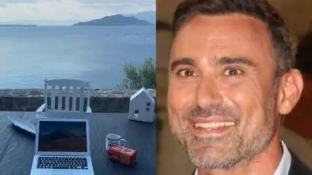 Η Αίγινα, λοιπόν, είναι ένα νησί μόλις μισή ώρα από το λιμάνι του Πειραιά, που όμως σου δίνει την αίσθηση πως βρίσκεσαι κάπου πολύ μακριά, αυτό είναι το ωραίο της υπόθεσης. Και ο Γιώργος Καπουτζίδης έκανε μία πολύ καλή και στοχευμένη επένδυση. Εάν προκύψει κάποια επαγγελματική υποχρέωση, απλά πετάγεται στην πρωτεύουσα, μπαμ μπαμ. Όλο τον υπόλοιπο καιρό, βρίσκεται σταθερά εκεί. Εδώ που τα λέμε, με τέτοια θέα κι εγώ εκεί θα βρισκόμουν.