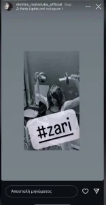 Φορώντας τη φόρμα της και ένα μαύρο τοπ, η Δήμητρα Ματσούκα στο βίντεο που μοιράστηκε στο Instagram φαίνεται να σηκώνει βάρη, γυμνάζοντας τα χέρια της. Ακούει στη διαπασών το τραγούδι της Μαρίνας Σάττι και μάλιστα έχει μάθει και τους στίχους, καθώς τραγουδούσε και χόρευε το τραγούδι των ημερών.