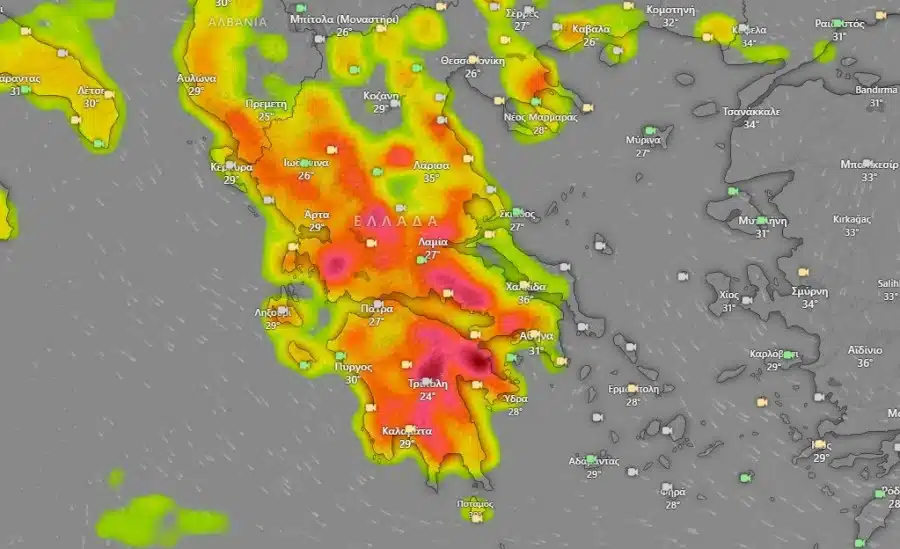Σε αυτό συνηγορεί και το προγνωστικό μοντέλο του windy όπου δείχνει έντονα φαινόμενα στην Στερεά Ελλάδα, συμπεριλαμβανομένης και της Αττικής και όχι μόνο.