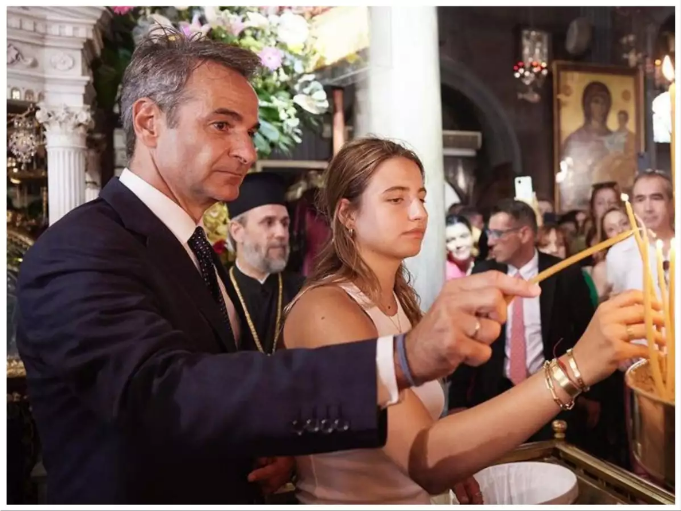 Ο Κυριάκος Μητσοτάκης έκανε την εμφάνισή του χθες στην Τήνο. Βρέθηκε εκεί για να γιορτάσει τον φετινό Δεκαπενταύγουστο. Στο πλάι του ήταν 20χρονη κόρη του Δάφνη.