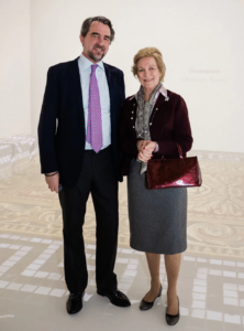 Η Άννα Μαρία παρευρέθηκε στο event συνοδευόμενη από τον γιο της, Νικόλαο. Η χήρα του τέως βασιλιά Κωνσταντίνου επέλεξε ένα γκρι σύνολο με πουκάμισο και midi μάλλινη φούστα για την εμφάνισή της. Συνδύασε τα εν λόγω ενδύματα με ένα μπορντό cardigan και μια τσάντα λουστρίνι με ανάγλυφα logos, υπογεγραμμένη από τον οίκο Louis Vuitton. Ολοκλήρωσε το look με ένα εμπριμέ μαντίλι, εντυπωσιακά κοσμήματα και μια κομψή καρφίτσα, η οποία αποτελεί αδυναμία γι’ αυτήν.