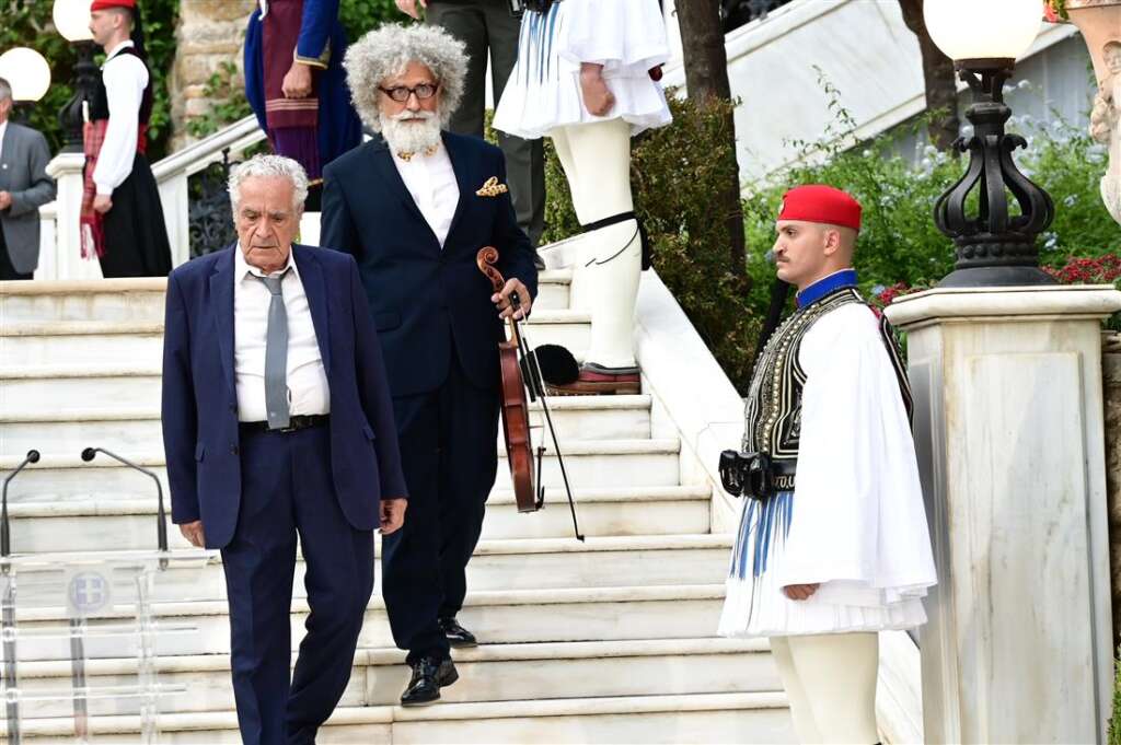 Ο λόγος για τον κ. Ιωάννη Στρατάκη, μουσικό της ΕΡΤ και μέλος της ορχήστρας που έπαιξε στη δεξίωση, που είχε πάει στη δεξίωση μετά την παραλία και δεν είχε φορέσει το κοστούμι και τα παπούτσια του, κάτι που έκανε ωστόσο στη συνέχεια.