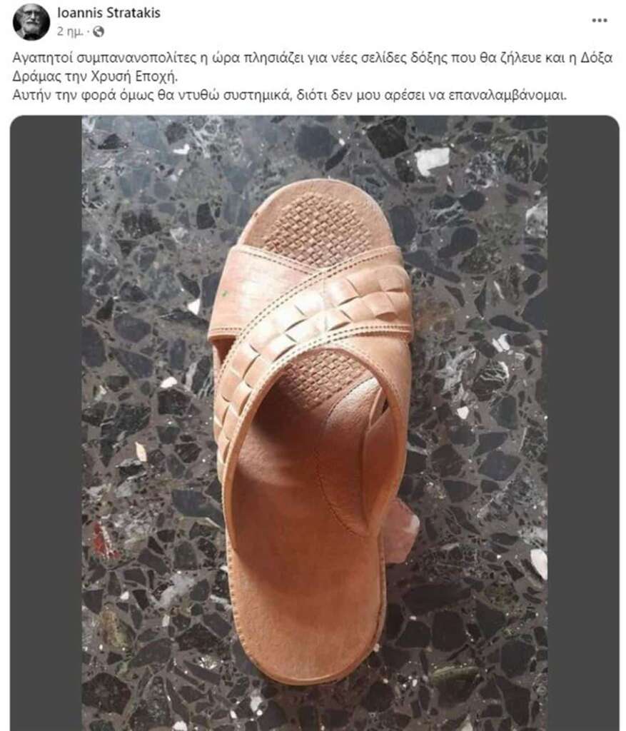 Μάλιστα σε ανάρτησή του λίγες ώρες πριν την εκδήλωση, ο ίδιος δημοσίευσε στο προφίλ του μια σαγιονάρα και έγραψε με χιούμορ: “Αγαπητοί συμπανανοπολίτες η ώρα πλησιάζει για νέες σελίδες δόξης που θα ζήλευε και η Δόξα Δράμας την Χρυσή Εποχή. Αυτήν την φορά όμως θα ντυθώ συστημικά, διότι δεν μου αρέσει να επαναλαμβάνομαι”.