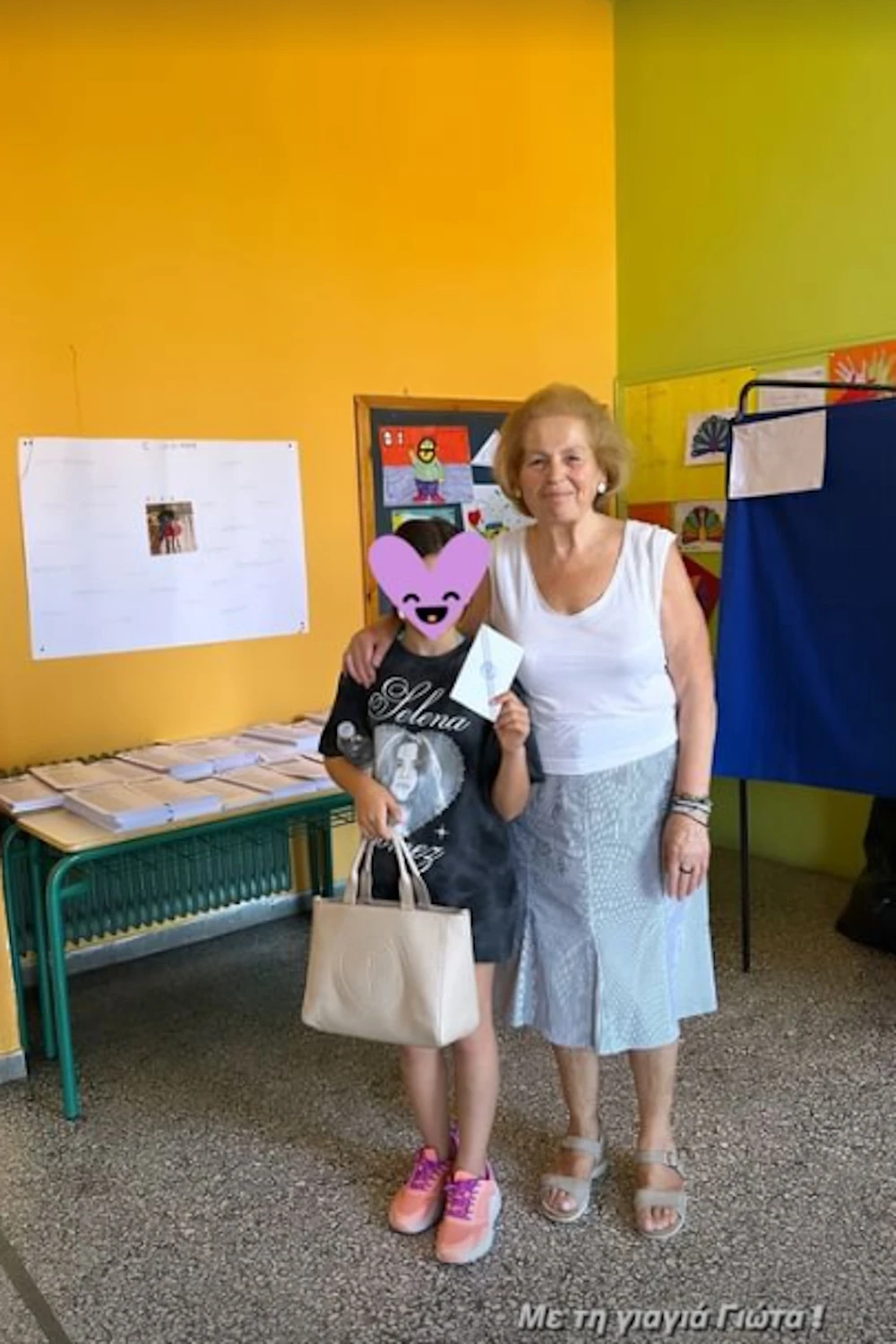 «Με τη γιαγιά Γιώτα», έγραψε η Σταματίνα Τσιμτσιλή φωτογραφίζοντας την κόρη της να κρατά τον φάκελο με το ψηφοδέλτιο και δίπλα τη μητέρα της.