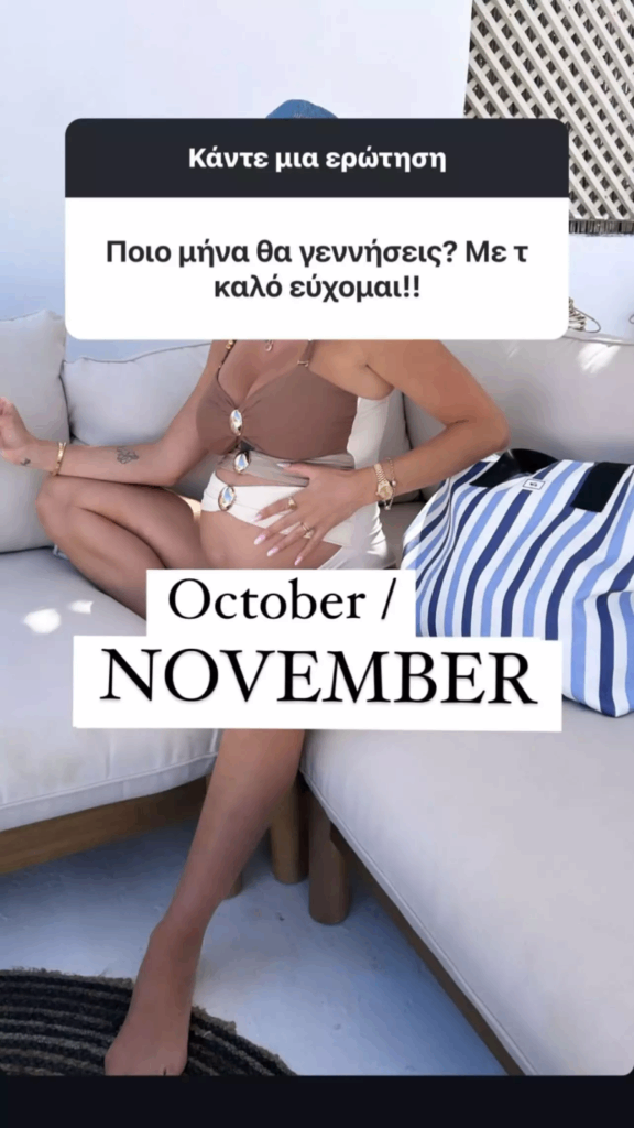 Σε άλλη ερώτηση διαδικτυακού της φίλου, η Ευρυδίκη Παπαδοπούλου αποκάλυψε ότι αναμένεται να γεννήσει τον Οκτώβριο ή τον Νοέμβριο.