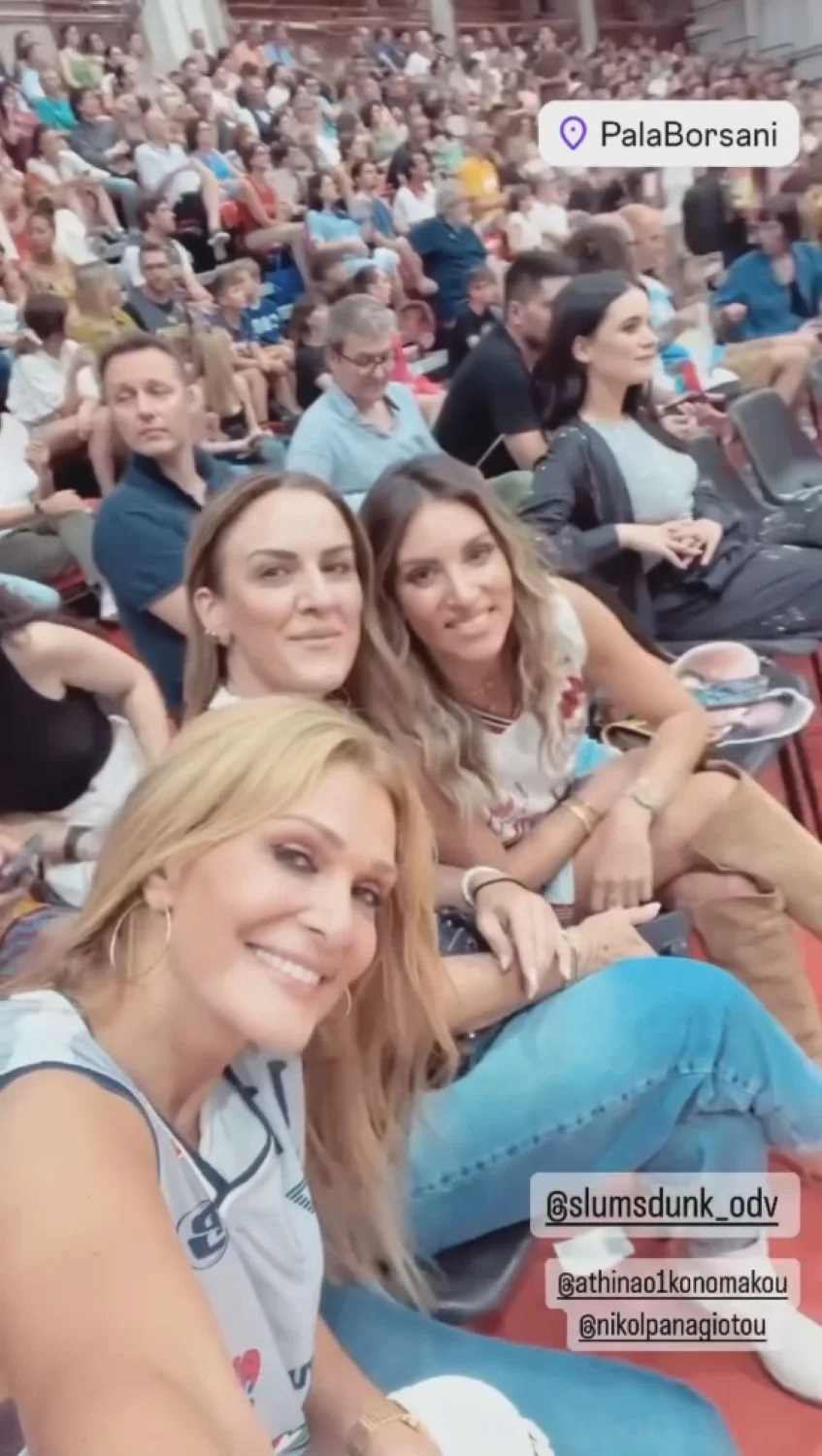 Παράλληλα, σε ανάρτηση της Νικόλ Παναγιώτου, η ηθοποιός ποζάρει στο πλευρό της γνωστής ενδυματολόγου, αλλά και της Νατάσας Θεοδωρίδου, εντός γηπέδου, με τις τρεις τους φορούν την μπλούζα με το όνομα του Ιταλοαργεντινού μπασκετμπολίστα.