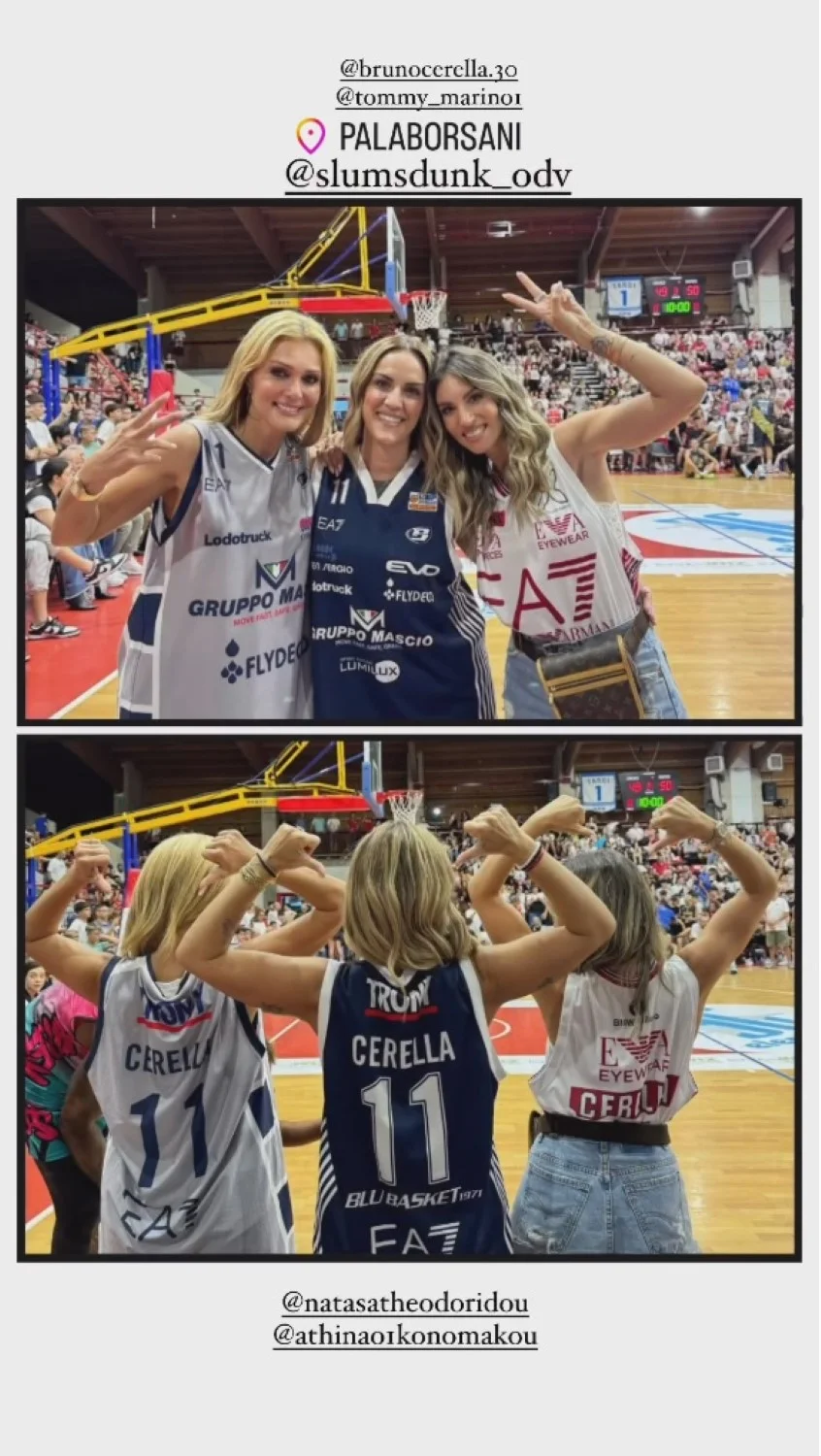 Συγκεκριμένα, σε story που κοινοποίησε στον προσωπικό της λογαριασμό στο Instagram το βράδυ της Πέμπτης 27/6, η Αθηνά Οικονομάκου ποζάρει χαμογελαστή σε γήπεδο μπάσκετ φορώντας φανέλα με το όνομα του Μπρούνο Τσερέλα.