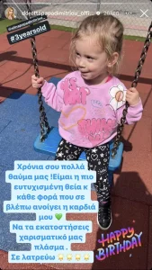 “Χρόνια σου πολλά θαύμα μας! Είμαι η πιο ευτυχισμένη θεία και κάθε φορά που σε βλέπω ανοίγει η καρδιά μου. Να τα εκατοστήσεις χαρισματικό μας πλάσμα. Σε λατρεύω”, έγραψε πάνω στη φωτογραφία.