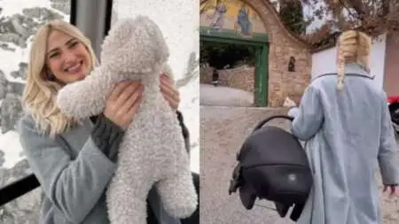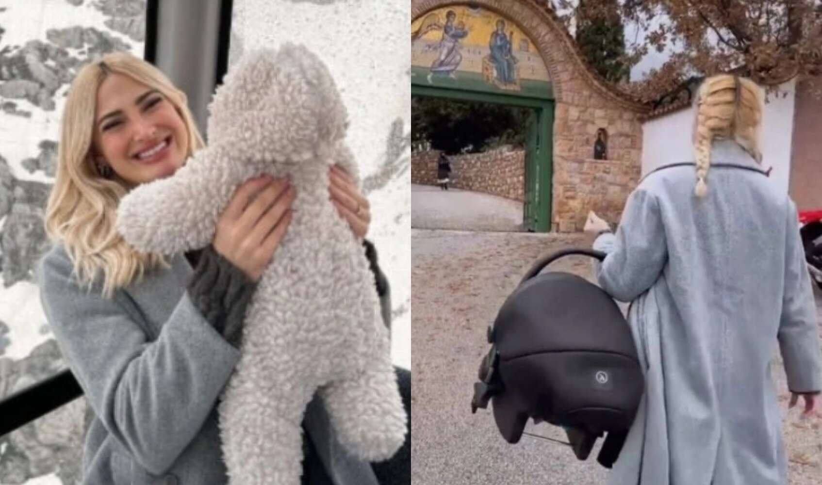 Το πρωί του Σαββάτου (4/3), η ίδια με το μωρό της επισκέφτηκαν τη Μονή Αγίου Εφραίμ του Θαυματουργού, ώστε ο μικρός να πάρει την ευχή.