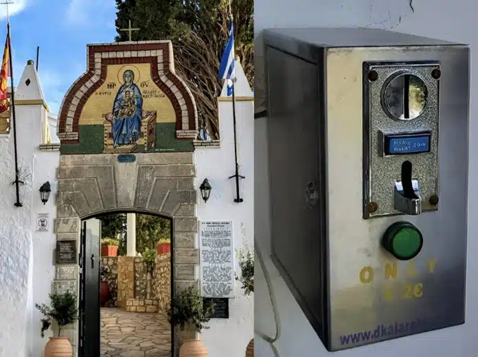 Όπως υποστηρίζουν επισκέπτες και προσκυνητές, οι μοναχοί έχουν τοποθετήσει κερματοδέκτη με τέλος εισόδου τα 2 ευρώ, προκειμένου κάποιος να χρησιμοποιήσει την τουαλέτα του μοναστηριού.