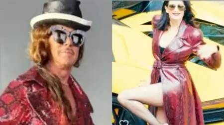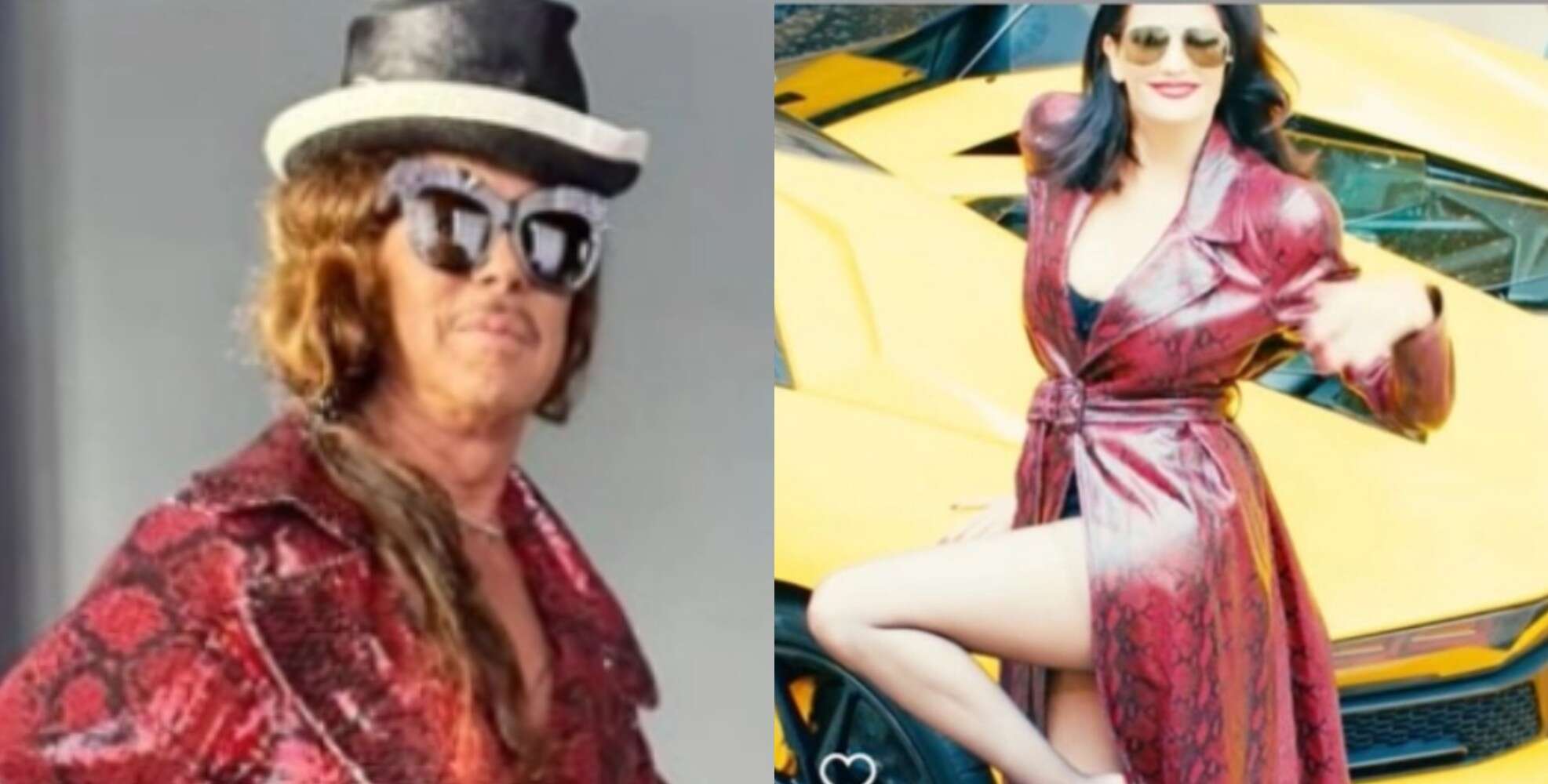 Φόρεσε τακούνια και πόζαρε με τον ίδιο τρόπο που φωτογραφήθηκε και η Γκριν. Στη λεζάντα της ανάρτησης ο Λάκης Γαβαλάς, έγραψε: «Καλημέρα φίλοι μου. Δεν θα ξαναδανείσω ρούχο ακόμη κι αν είναι για την διάσημη Εύα Γκριν».